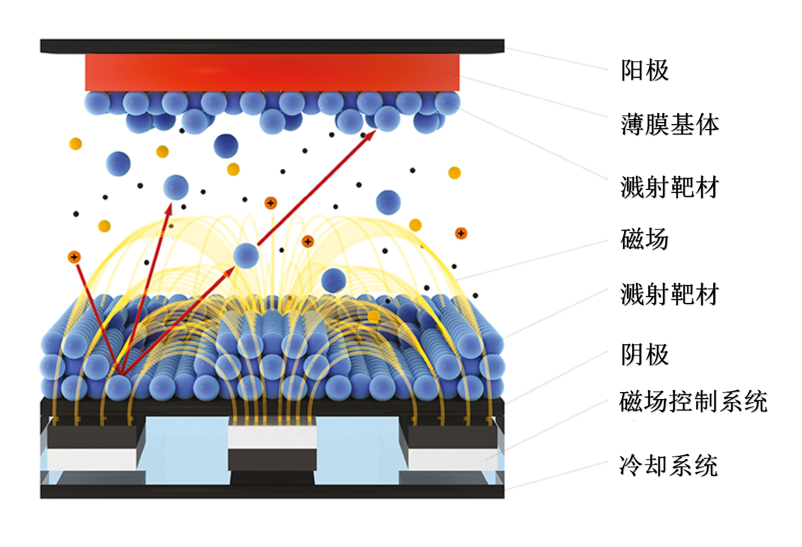 磁控濺射原理圖