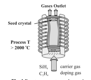 在密閉反應器中,保持合適的反應溫度(2000-2300℃)和壓力(40kPa),反應爐內(nèi)通入由H2或者He載帶的SiH4C2H4。反應氣體在高溫下分解生成碳化硅并附著在襯底材料表面,并沿著材料表面不斷生長。通過控制反應容積的大小、反應溫度、壓力和氣體組分等條件,得到最佳工藝條件。